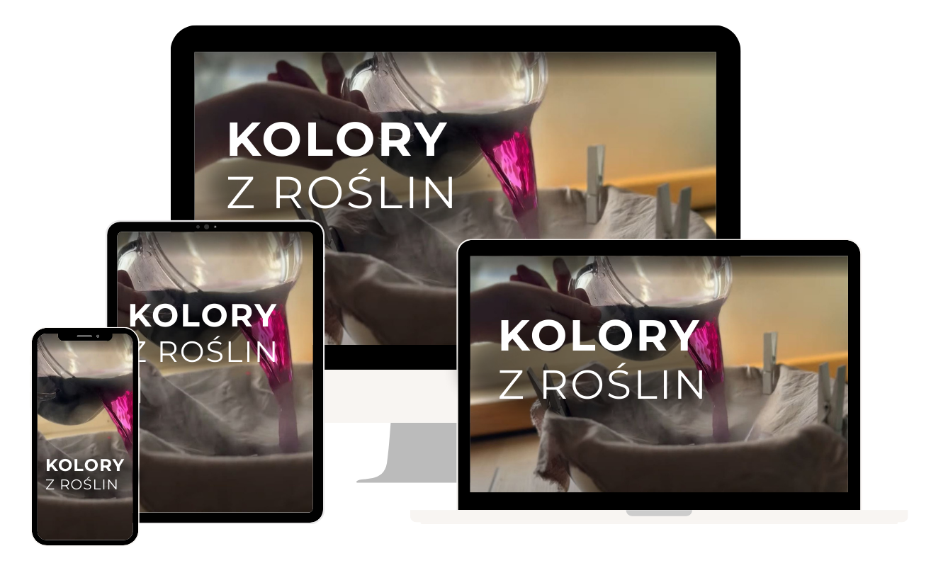 Kolory z Roślin to kurs online, w którym krok po kroku nauczysz się, jak wydobywać trwałe, wyraziste barwy z roślin i przenosić je na tkaniny.